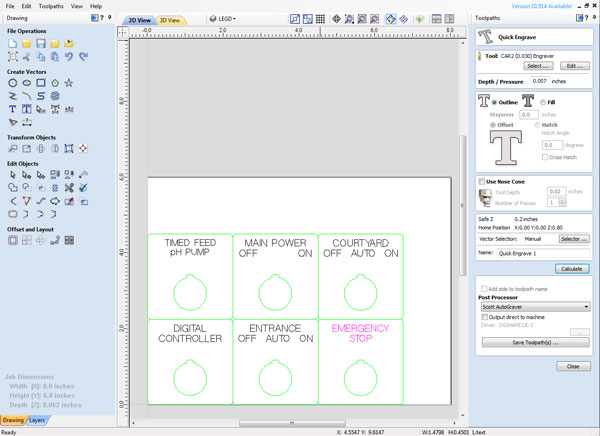 Use our uniquely created engraving software to lay out your text, graphics and symbols. Text can be wrapped around a circle, to coordinate with controls that rotate. There's a library of templates for all our legend plates. Dozens of fonts, as well as custom icons, are included in our software, too.