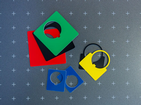 The second choice behind plastic as the most popular material for legend plates is black-coated aluminum. For this, the plastic cutter is replaced by a burnishing tool or a scribe. These tools remove the black coating to expose the underlying aluminum, thereby creating a silver letter on a black background. Both tools require a spring-loaded holder. You can find the tools and adapters in our Cutters & Tools Store.